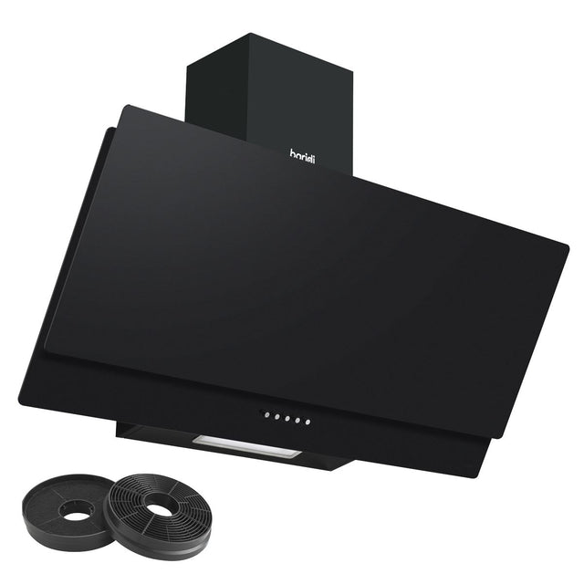 Baridi Angled Chimney Cooker Hood with Carbon Filters & LED Lamp 90cm, Energy Class A - Black Glass